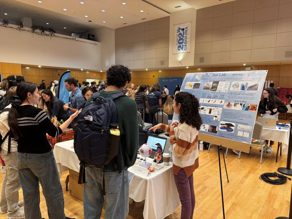 Daniela, Zihan, and Gooyoon present our lab research with devices fabricated by all our group members. What an amazing engagement wtih young-generation Tar Heels!
