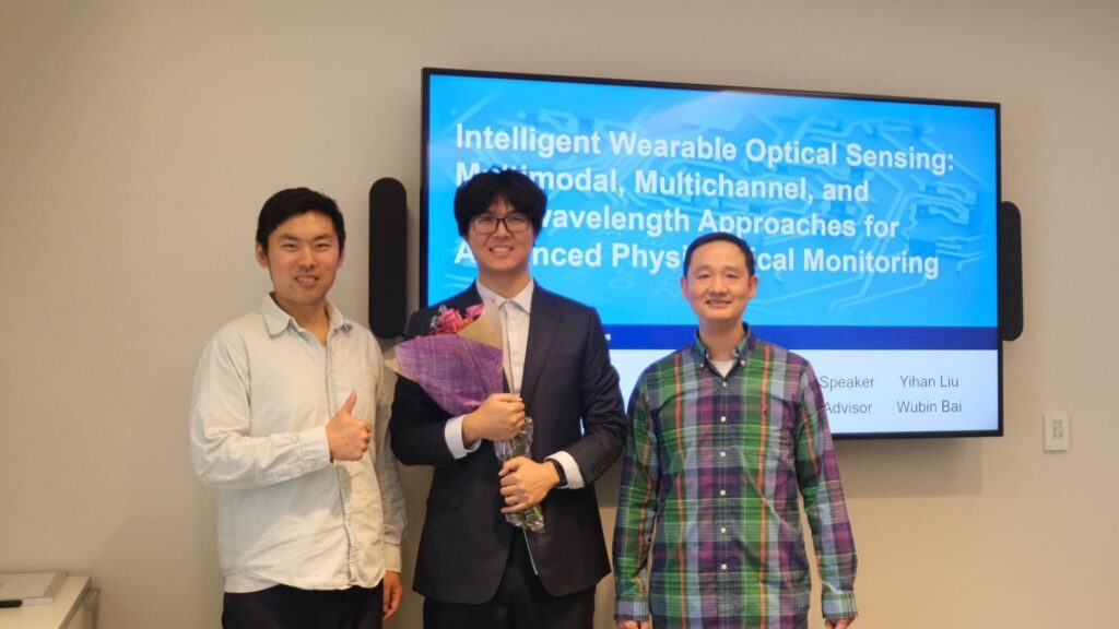 Congratulations to Dr. Yihan Liu on successfully defending his Ph.D. dissertation! Onward to a bright future. The thesis title is: Intelligent Wearable Optical Sensing Multimodal, Multichannel, and Multiwavelength Approaches for Advanced Physiological Monitoring.
